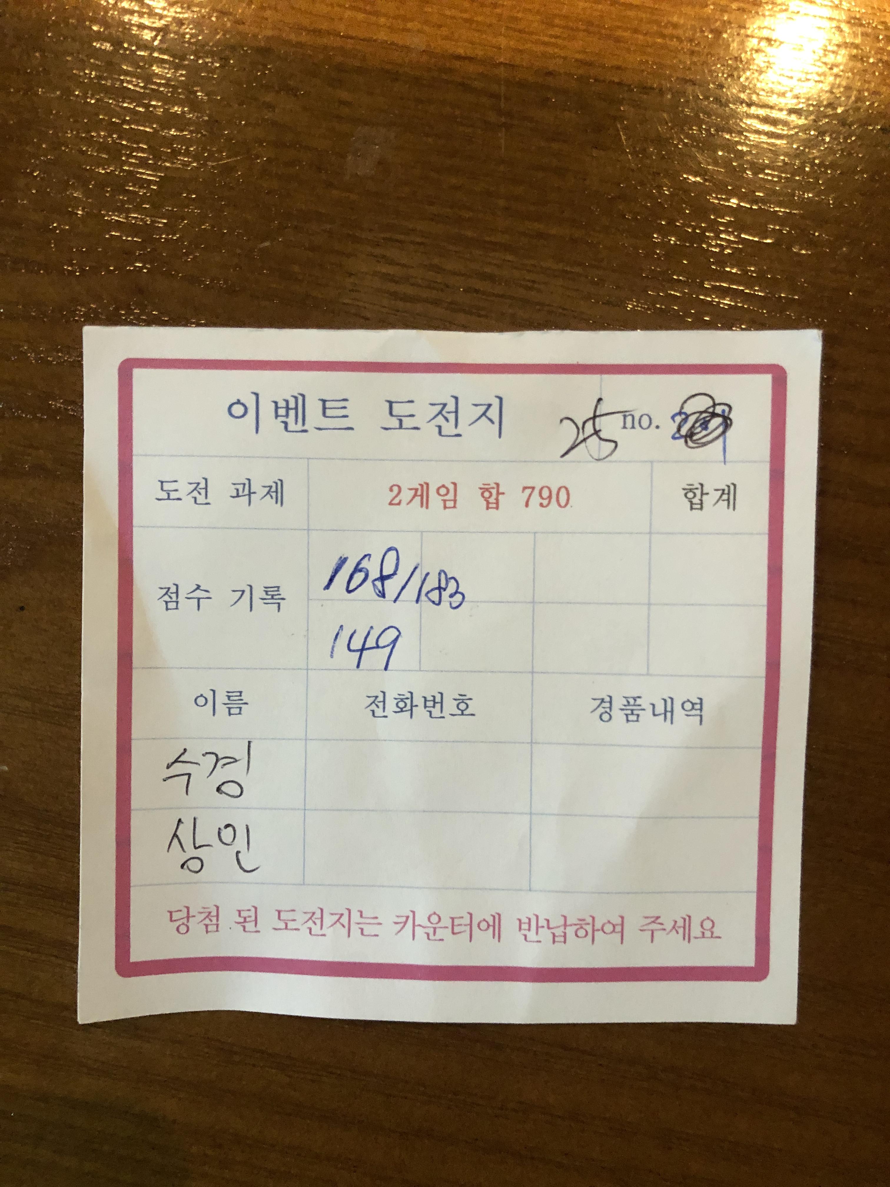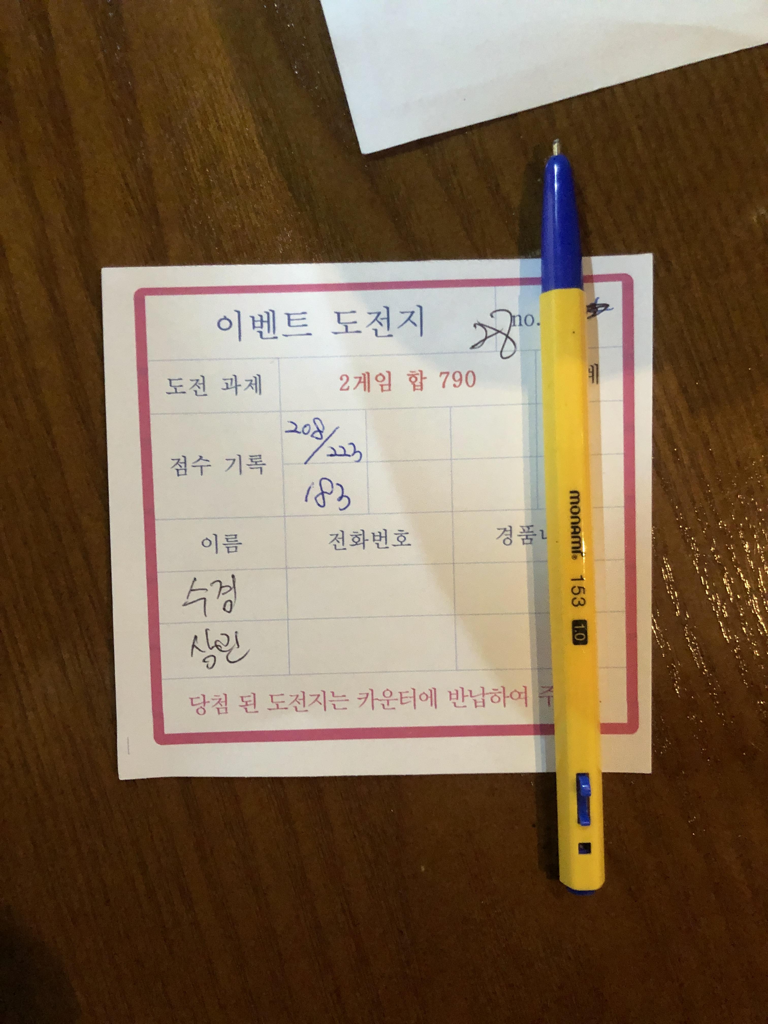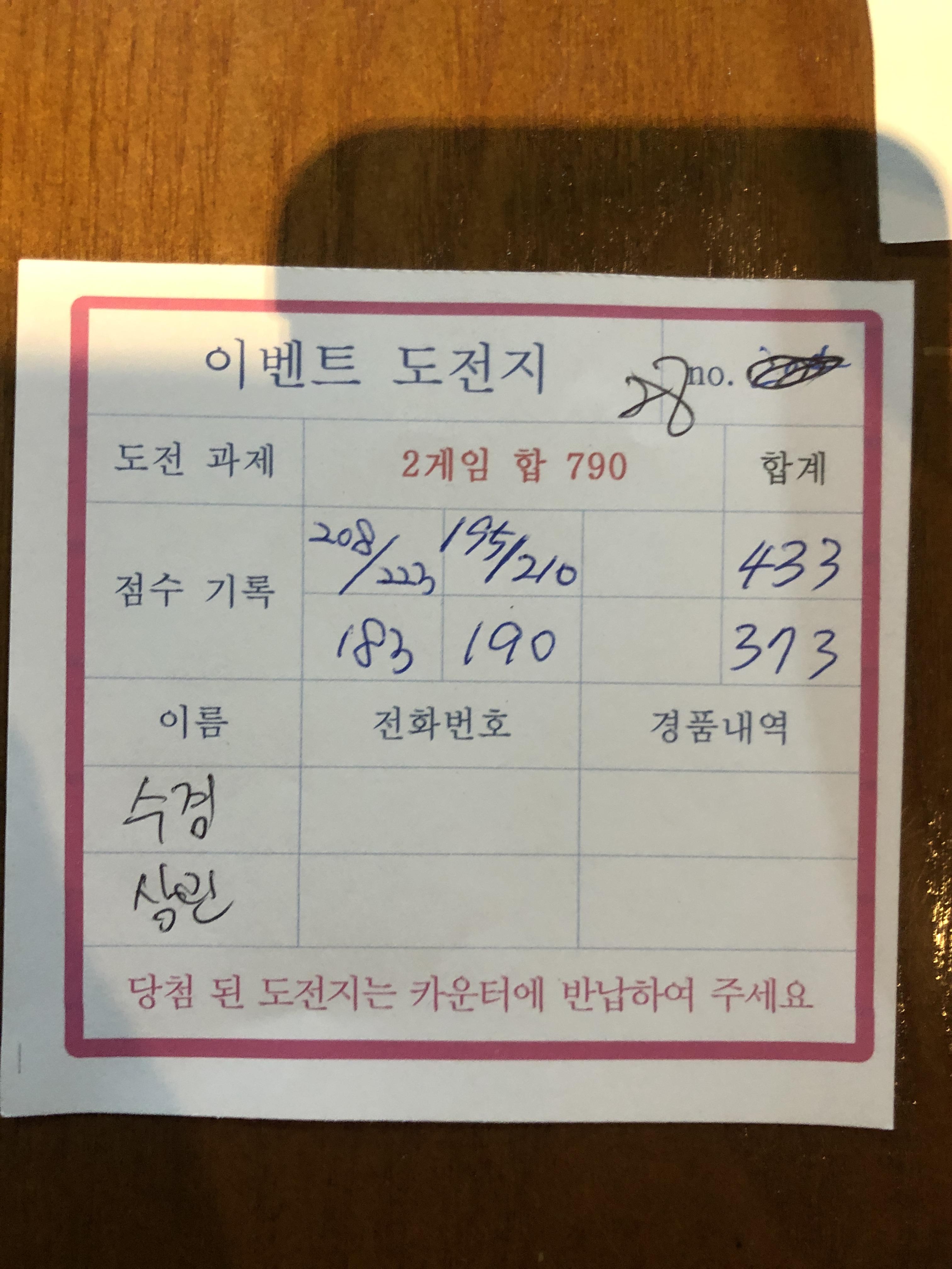참가비에 게임비 포함(3게임) | |