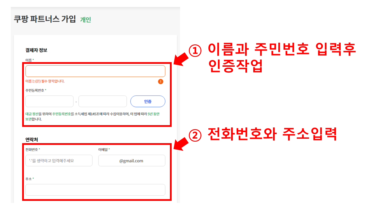 ②전화번호와 주소를 입력합니다. 이메일은 로그인된 메일주소로 자동 입력됨