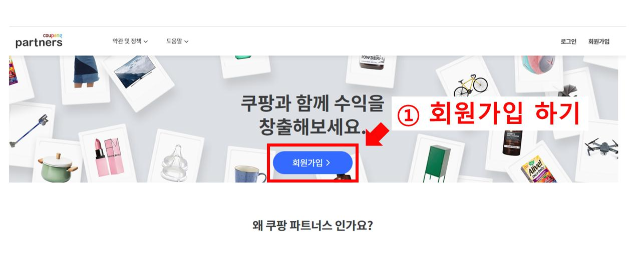 쿠팡 파트너스를 시작한다면 먼저 가입을 해야합니다.