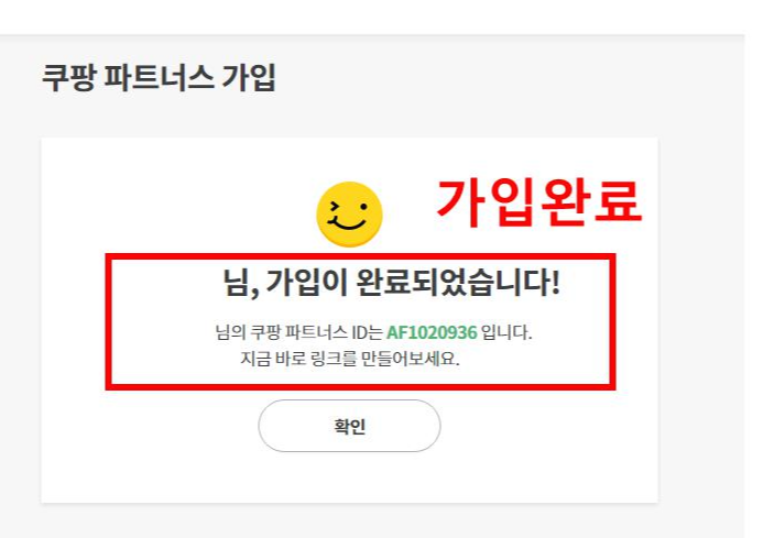 여기까지 완료하면 쿠팡파트너스에 가입이 완료되고, 가입완료 화면이 뜨게 됩니다.